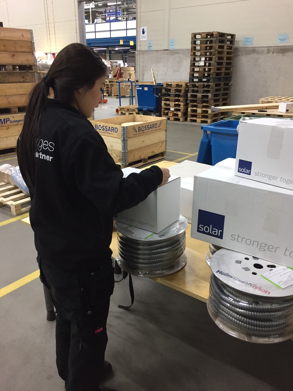 - Nu specialpackas och märks istället allt material direkt hos oss enligt de specifikationer vi får från Andritz, säger Christian Mars på Solars centrallager i Halmstad.