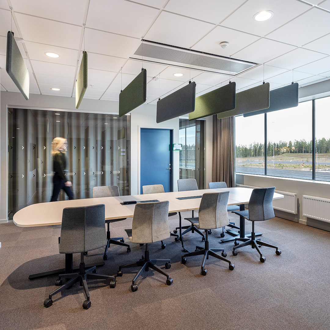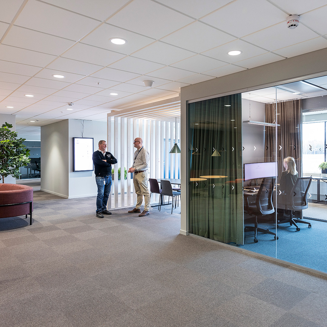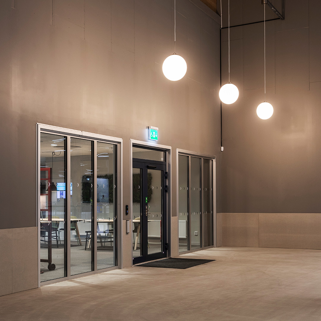 Utöver lagerytor rymmer den nya anläggningen också ett stort kontor. Till detta har Solar Light varit med och projekterat belysning samt levererat armaturer. Till projektet levererade pendlade armaturer, plattor och downlights, och då framför all den mycket populära Inverso II. I trapphusen sitter även armaturer som styrs med ActiveAhead-styrning, vilket innebär att de pratar med varandra via Bluetooth för att bara lysa där det behövs, när det behövs.