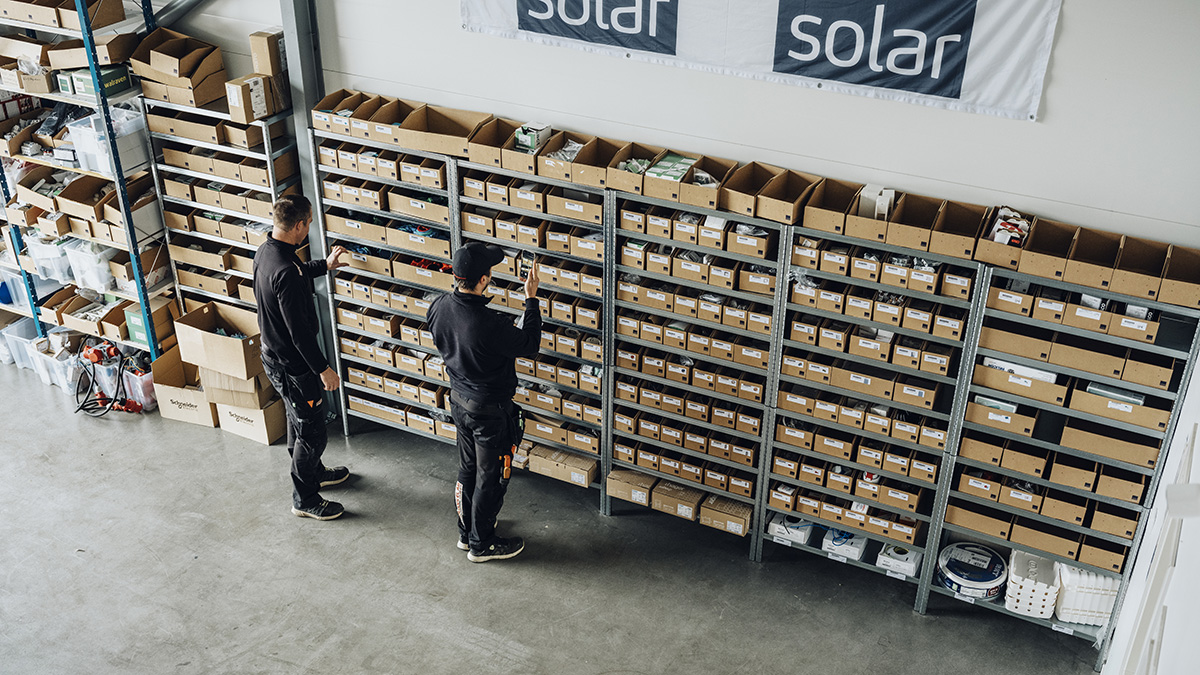 Smart Supply har en lagerhantering som varken kräver wifi eller programvara. Du kan när som helst definiera det material du vill ha tillgängligt med minimi- och maximivärden. Baserat på listan beställer Solar till exempel en container, fyller den med varor, distribuerar dem i lådor och levererar till byggarbetsplatsen. När en låda är tom beställs kompletterande artiklar via projektets favoritlista i Solars e-handel. Du har alltid full översikt över ditt lager.
