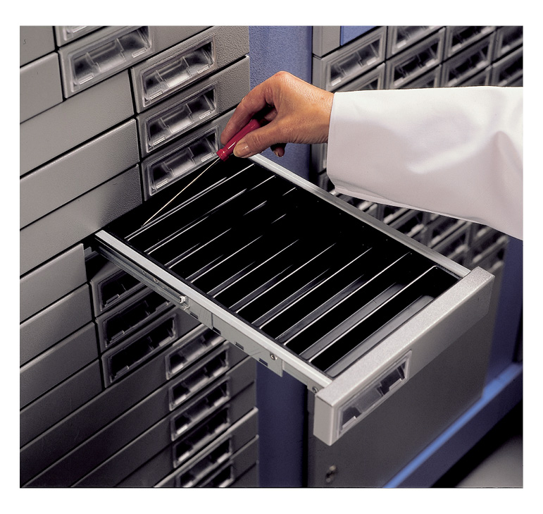 Lagerautomaten är en säker lagringsplats för kemikalier och riskutrustning och. Avsnitten kan levereras med både pekskärm och kortläsare. Lösningen gör det möjligt att kontrollera användaråtkomst och få historiken på användarnas beteende. Företagets egna personalkort kan användas. Det är möjligt med massuttag.