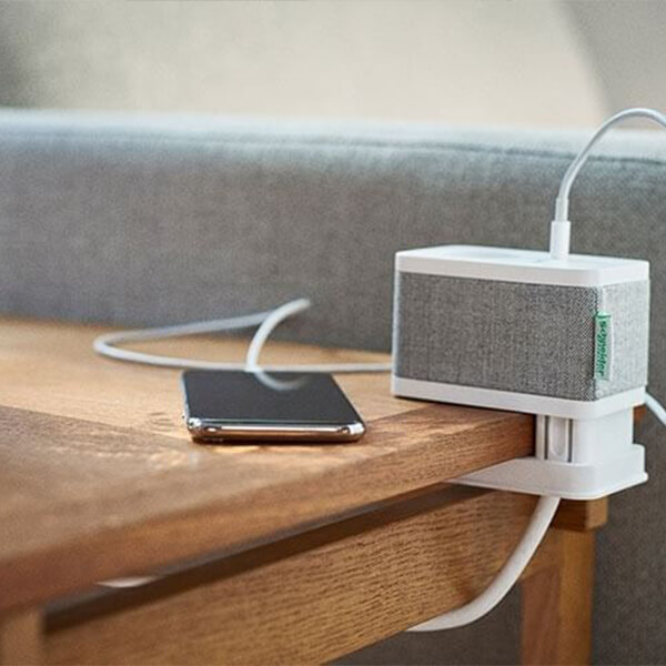 Bordsenhet S, kraft+ USB A+C antracit med grått tyg. Kläms fast på bordet eller skivan välj mellan vit eller svart.