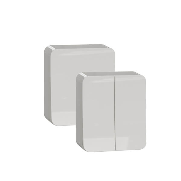 Fyra-i-ett-koncept – samma insats kan användas för både infälld IP20/IP44-montering och utanpåliggande IP20/IP44-montering. Insatserna finns i tre basfärger: vit, antracit och metallic och kan kombineras med valfri designram. Koppla upp befintliga och nya strömställare och styra belysningen med Wiser Lighting Control.